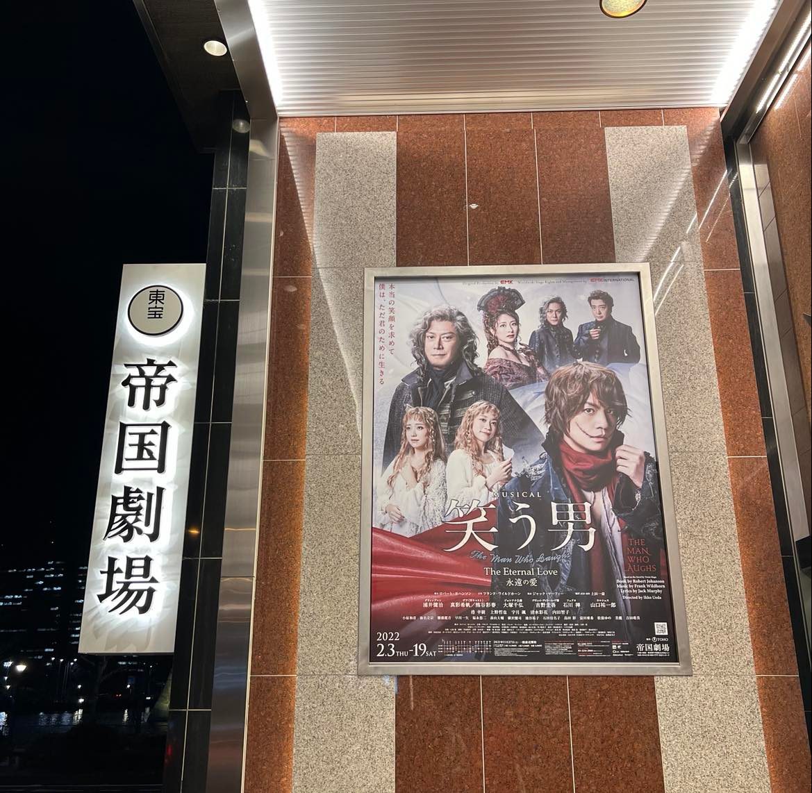 久しぶりの帝劇、演目は19世紀のフランス文豪ヴィクトル・ユゴーの「The Man Who Laughs(笑う男)」。