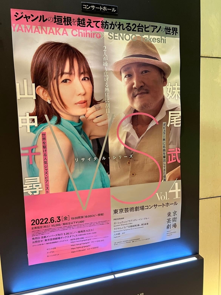 ピアニスト2名を呼んでのイベント、今回は大学時代の学友だった山中千尋と妹尾武。